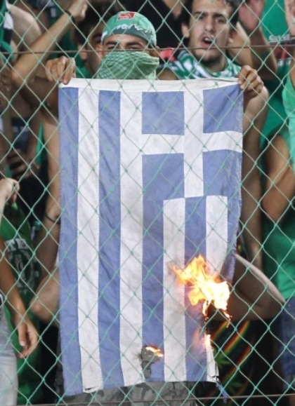 Το περιστατικό συνέβη στο 47ο λεπτό του ντέρμπι ανάμεσα στο ΑΠΟΕΛ και την Ομόνοια όταν ένας φίλαθλος της δεύτερης ανέσυρε μια ελληνική σημαία και της έβαλε φωτιά (!) Ο ίδιος μάλιστα καμάρωνε με στόμφο για το κατόρθωμα του ξεχνώντας πολλά πράγματα προφανώς.